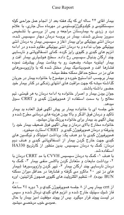 هموپرفیوژن در بیماران سپسیس یا عفونت خون یا عفونت های شدید پنومونی و پریتونیت و پانکراتیت