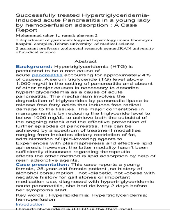 هموپرفیوژن در موارد چربی خون بالای TG ≥ 1000